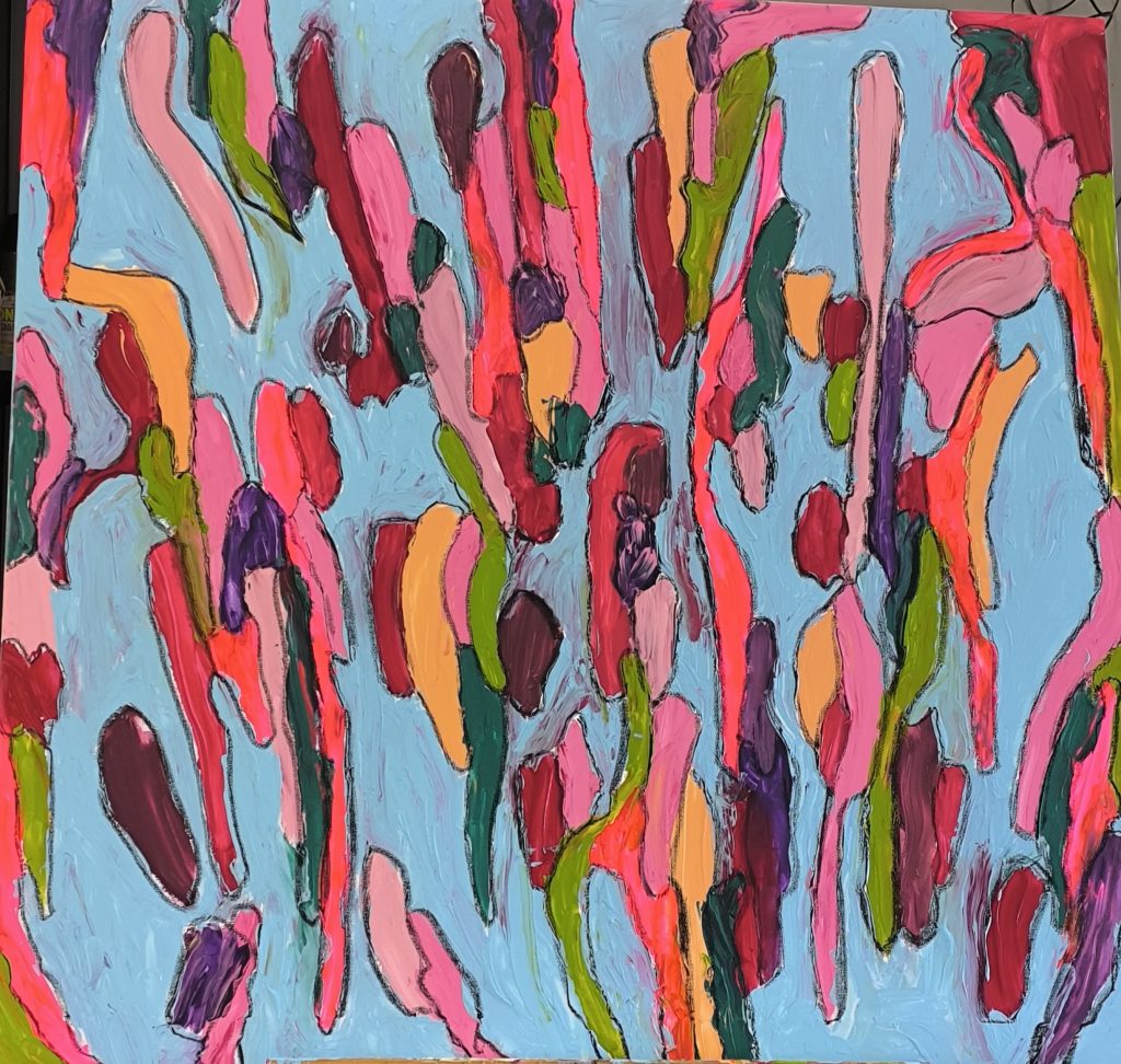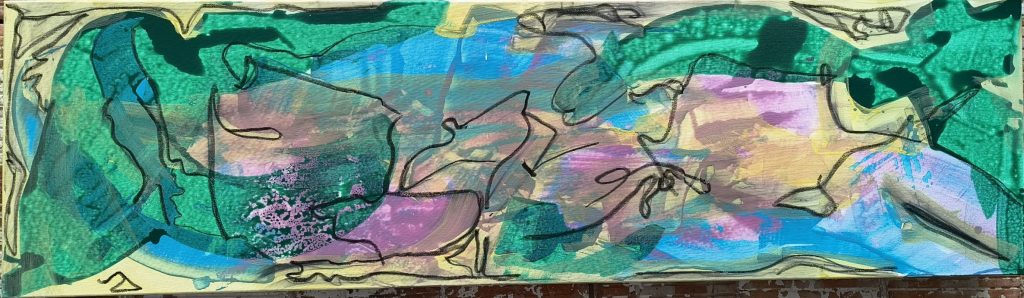 Aus intuitivem Wissen und Gefühlen und immer wieder auch aus psychischen Zuständen entsteht vielerlei Buntes auf teilweise selbst hergestellten Leinwänden. So erhalten z. B. alte Leintücher ein zweites Leben.